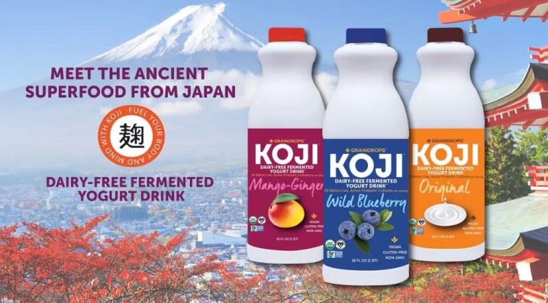 如,Kikkoman发酵豆奶饮料,100亿乳酸菌发酵,含1%的芒果/草莓汁液。Velle的发酵椰子/燕麦饮料,含益生菌,嗜酸乳杆菌和双歧杆菌。Bio-K的发酵米饮料,含500亿活性益生菌。Koji发酵谷物饮料,含200亿活性益生菌,添加益生元纤维,强化消化健康。