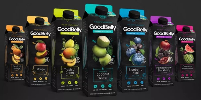 而益生菌在果汁饮料中的应用案例也非常多,如Kevita经典的气泡果汁益生菌饮料,GoodBelly的有机益生菌果汁等等,都包括有多种水果组合及口味,含有大量的活性益生菌,有助于消化健康。