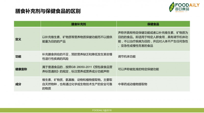 ▲ 表 膳食营养补充剂与保健食品的区别