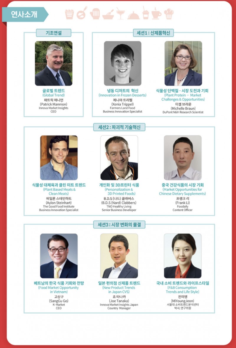 创办于1983年的Seoul Food是亚洲第三大、韩国最大的食品展会,而从2017年开始增设的GFTT(全球食品趋势与技术大会,Global Food Trend & Tech Conference)成为Seoul Food中最为亮眼的一个环节。继去年的Trends Meet Tech主题之后,2018 GFTT以Disruptive Food Technology为主题,围绕前沿食品技术催生出的商业机会展开了多角度的深入探讨,来自荷兰、德国、美国、中国、越南、日本和韩国的9位重磅嘉宾进行了精彩的分享。