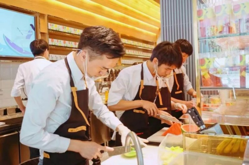 在门店,有茶也对出品提出要求——30秒出一杯,吴磊说,这样确实会多使用1~2名员工。因此,有茶在联合科研机构研发用来切水果的机器——机械化不仅提高效率,也是解决标准化的有效途径。