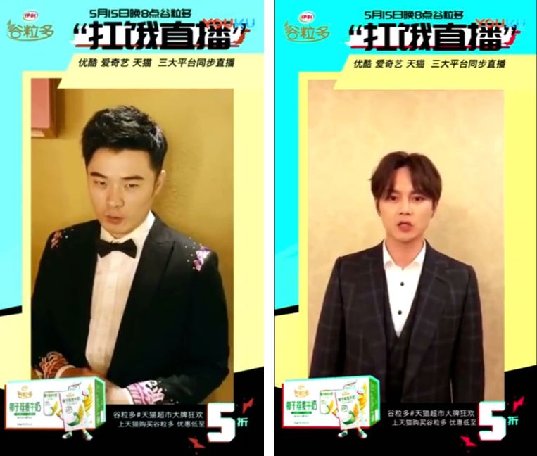 ▲ 谷粒多天猫515“扛饿直播”的明星VCR预热