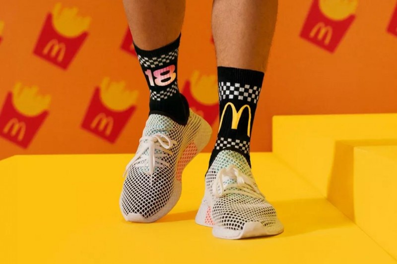 没错,卖了 80 年汉堡的麦当劳叔叔一直隐藏了一颗想当设计师的心,前些天,他携加哥设计师 Joe Freshgoods 推出了一套主色调为黑色的服装,包括一件夹克,一件T恤和一双袜子,印着经典的黄色金拱门,数字 18,黄色的笑脸和一句 slogan“THAT’S THE MIX”,有兴趣的朋友们可以去纽约、芝加哥、洛杉矶和亚特兰大的麦当劳门店了解一下,麦当劳的官网没有披露价格。