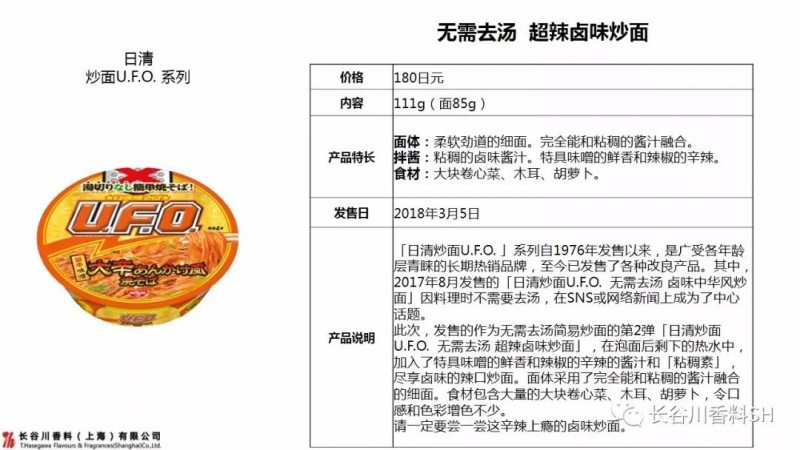 日清推出的勿需倒去热水的新型改良版炒面,17年8月首推出后,迅速成为话题。在泡面后剩下的热水中,加入了“粘稠素”,使其变成拌面酱汁。