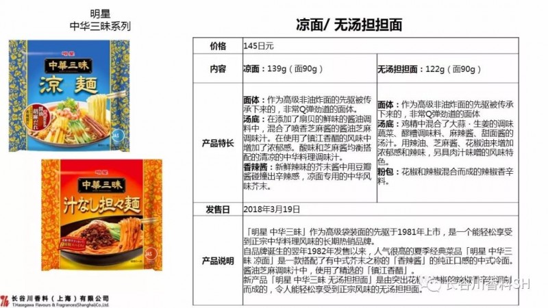 新产品「明星 中华三昧 无汤担担面」是由突出花椒和辣椒的辣椒香辛料调制而成的,令人能轻松享受到正宗风味的无汤担担面。