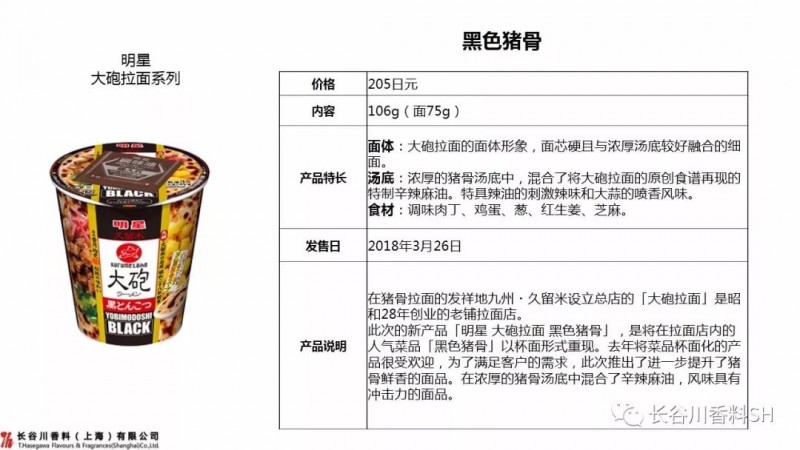 「大砲拉面」是昭和28年创业的老铺拉面店。此次的新产品是将在拉面店内的人气菜品「黑色猪骨」以杯面形式重现。去年推出后受到好评,这次为了满足客户的需求,进一步提升了猪骨的鲜香度,并在浓厚的猪骨汤底中混合了辛辣麻油,让风味更具有冲击力。
