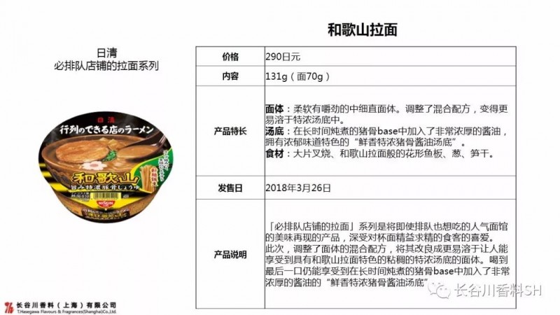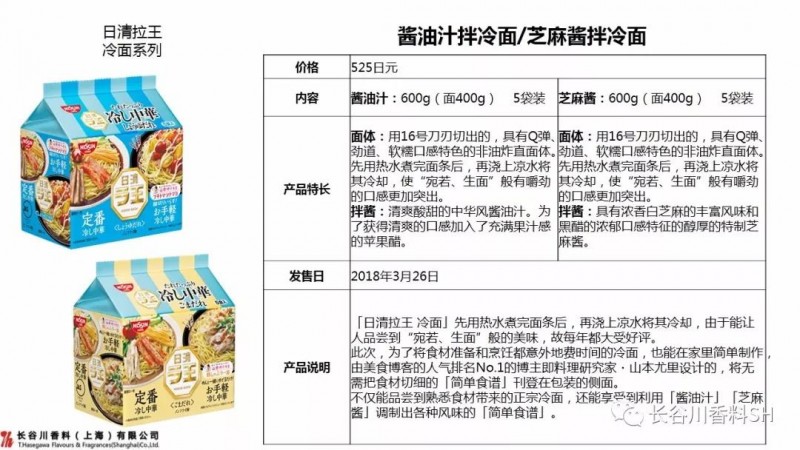 「高汤酱油芝麻油风味」中添加了芝麻油风味,丰富的高汤酱油&拌酱是其特色。特别添加了「鲣鱼干」,令香气和鲜味更胜一筹。