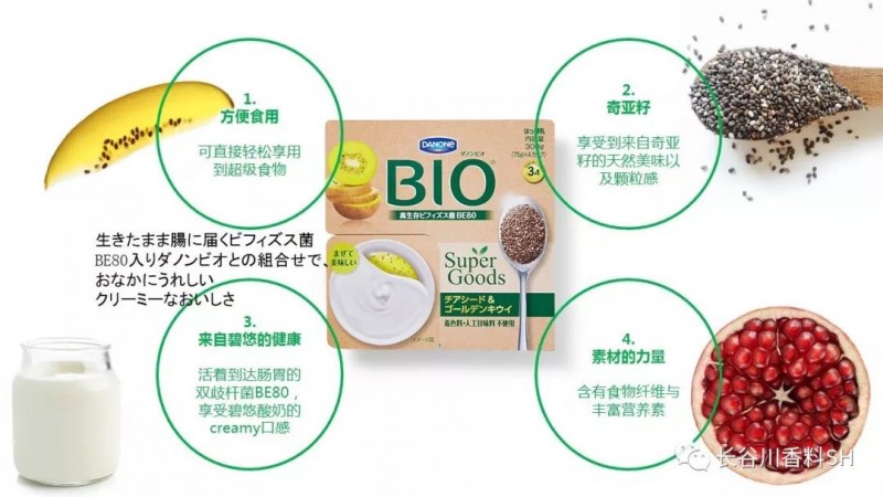 「达能碧悠」SUPER GOODS系列,是由添加了“能活着到达肠道”双歧杆菌BE80的「达能碧悠酸奶」与被称为中南美的“力量的种子”、食物纤维含量高达生菜约30倍以上的奇亚籽,以及富含维生素、矿物质营养素的「黄金奇异果」、「红石榴」分别进行搭配。