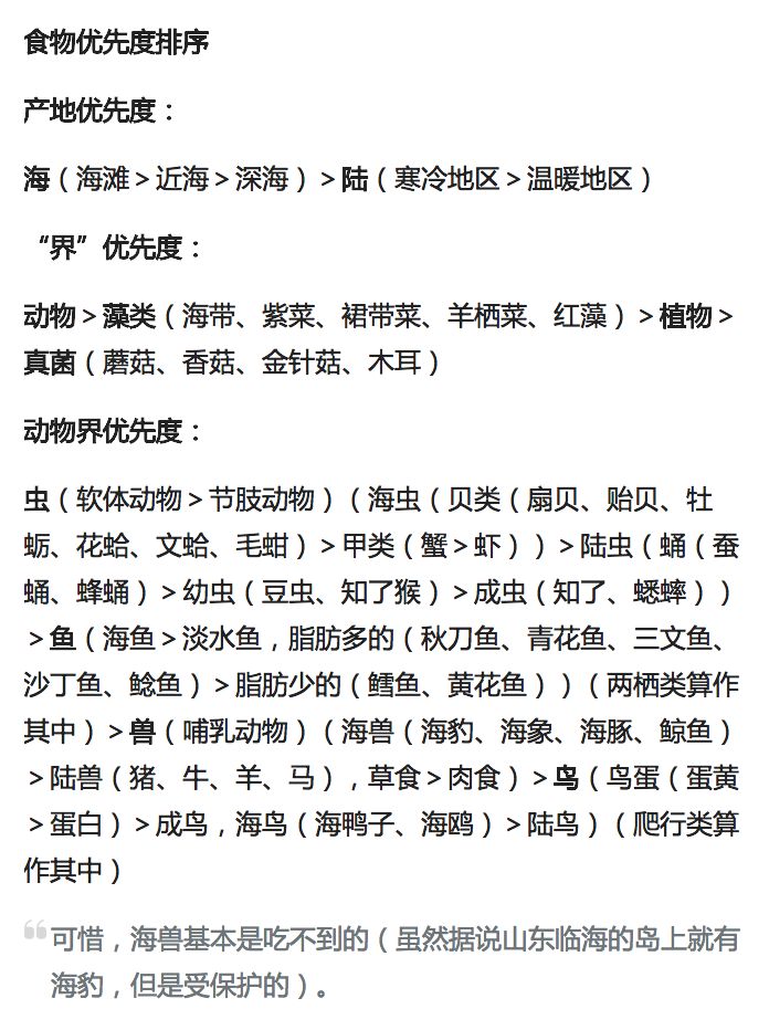 (在原始饮食分级图里,易楚还对食物进行了优先度排序)