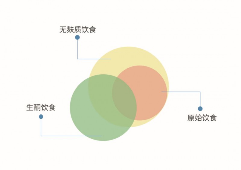 和原始饮食、无麸质饮食这两种强调食物种类的饮食方式相比,生酮饮食的关注点更多在于“高脂、低碳、中度蛋白”的营养比例,带有更明显的“减肥”标签。三者之间具有概念重叠的部分,如果你是一个非常严格的原始饮食者,那么你有极大可能也是一个无麸质饮食者和生酮饮食者。不过它们彼此之间也有很不一样的地方,生酮饮食可以不原始,比如吃黄油、奶酪;无麸质饮食者可以不生酮,比如把红薯、山药作为主食。