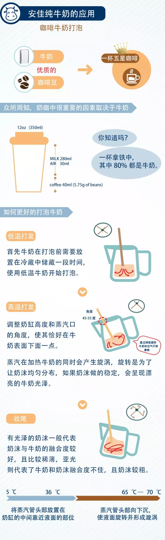 牛奶受热的第一个反应变化就是蛋白质变性,酪蛋白负责良好的表面活动力,而乳清蛋白则能强化奶泡结构,稳定奶泡的持久度。