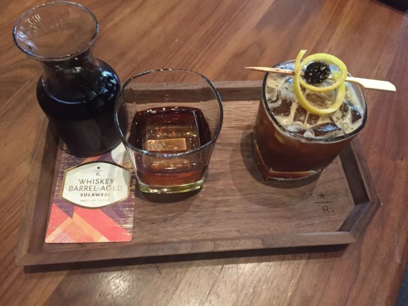 Cafe Culture 团队,在2017年4月份,曾经拜访了位于西雅图的星巴克旗舰店,星巴克在2017年推出了经过威士忌酒桶酿造的生豆烘焙出的咖啡,如下图: