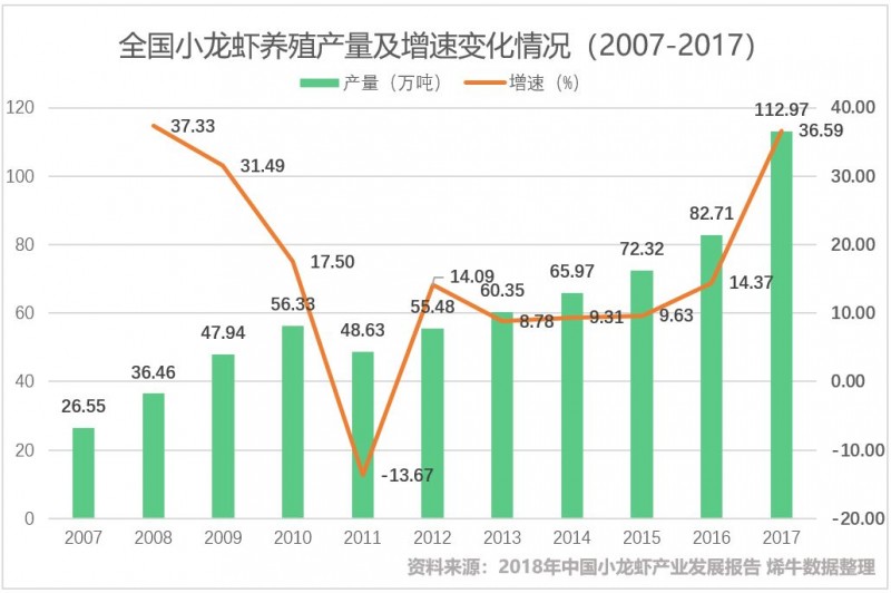 市场火爆,小龙虾的产量和消费量随之高速增长。