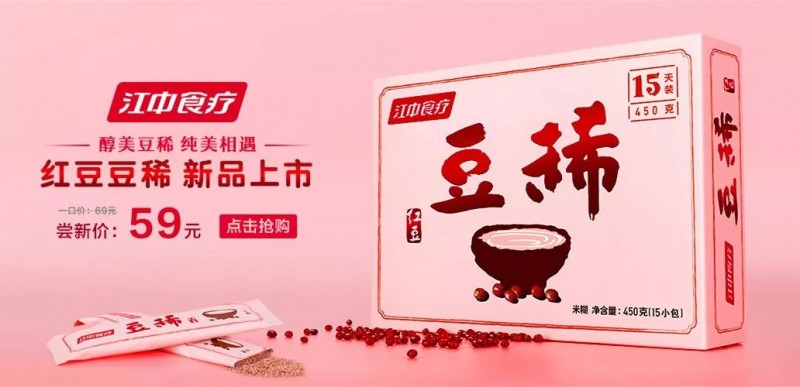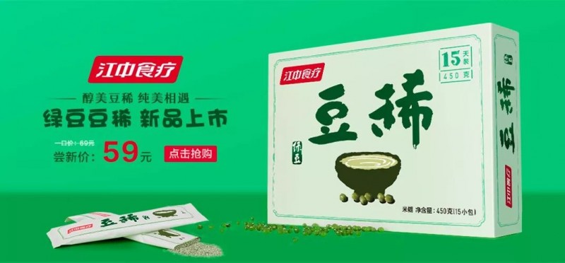 这则深入人心的广告,源自2016年9月份江中正式推出的新品——江中猴姑牌米稀,并且提出早餐食疗概念,加入早餐市场激烈竞争。近日,江中持续深耕食疗领域,推出“江中食疗”红豆豆稀、绿豆豆稀两款新品,在官方旗舰店销售,新品上市尝鲜价为59元/盒。