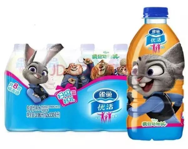 2017年5月6日,雀巢就正式与迪士尼进行合作,通过华特迪士尼(中国)有限公司的授权,推出定位儿童的优活儿童水。优活儿童水采用八款来自卡通《疯狂动物城》的卡通形象。小包装,加上印有赤狐尼克、棉尾兔朱迪、猎豹本杰明警官、树懒闪电等卡通形象的瓶身,为这款针对儿童的瓶装水增添了趣味。