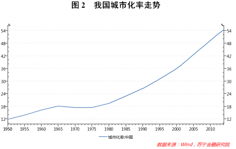 首先,“千禧一代”成长于我国经济飞速发展时期。自改革开放以来,中国经济开始了长期高速增长的步伐。按照不变价计算,我国2017年GDP总量相当于1982年(“千禧一代”开局之年)的近150倍(参见图1)。与此同时,我国的城市化率也自上世纪80年代开始加速(参见图2)。由此一来,“千禧一代”不同于上一代人,他们充分享受到了经济增长的红利,成长中大多没有经历严重的物质短缺,因而他们更具备消费升级的主观需求。