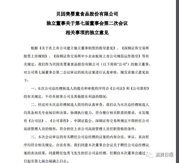 7月1日,贝因美董事会宣布,聘任包秀飞担任公司总经理。