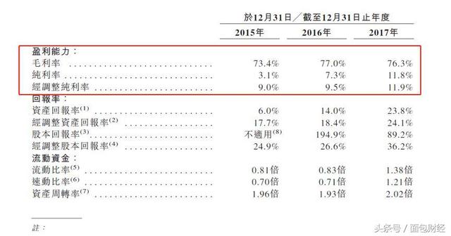 但是,我们再往下一看,2017年五谷磨房经调整后的纯利率只有11.9%。净利润率与毛利率相差超过60个百分点,问题何在?