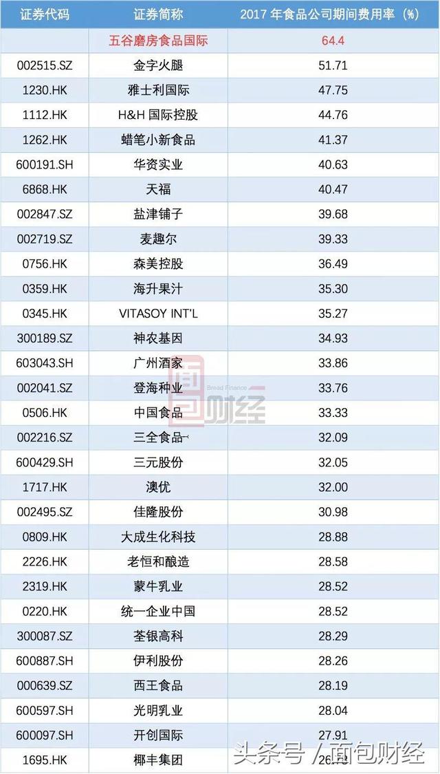 以2017年年报中公布的数据为准,五谷磨房的费用率又一次明显的高于了其他参考公司。