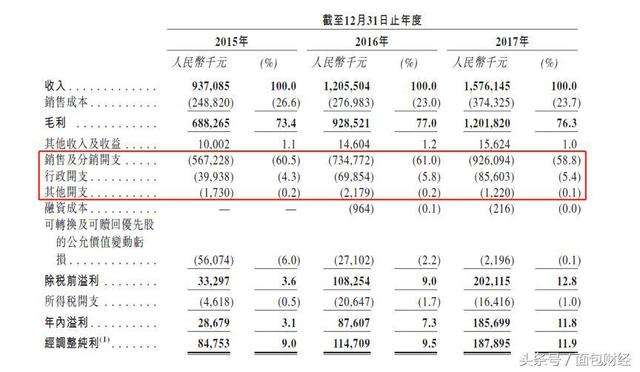 根据招股书显示,公司虽然有着很高的毛利率,但经调整后的纯利率仅有11.9%。简单计算,各项费用率高达60%以上。