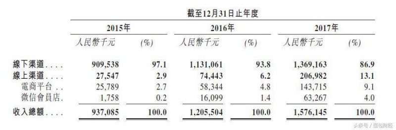 从招股说明书来看,目前公司的分销网络分为两个部分,即线上和线下。截至2017年12月31日,公司线下分销网络主要是超市中开始的直营专柜,共计3690个专柜遍布中国453个城市。线上渠道主要是电商平台如天猫、京东、唯品会等,和社交网络平台即微信会员店。