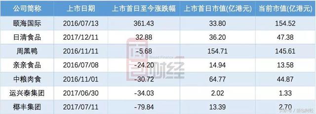 近两年在港股IPO上市的中小市值公司,冰火两重天,有持续飙升的,也也有一上来就破发的公司。以下为2016年之后在港股上市的食品行业公司: