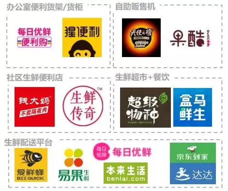 (1)生鲜配送:较老牌的生鲜配送电商有每日优鲜和易果生鲜,O2O生鲜配送企业京东到家等,以便利货架/货柜入局办公室无人零售是从线上反攻线下的典型。