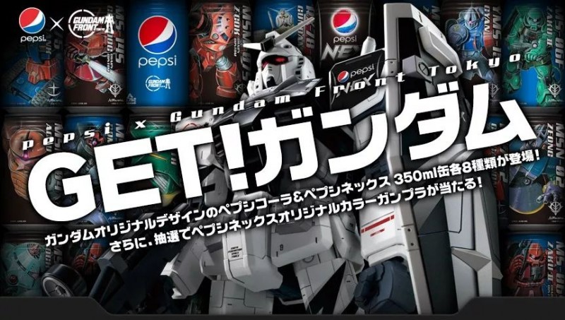 2012年,为庆祝日本首个高达主题公园“GUNDAM FRONT”在东京开幕,Pepsi和日本国民动画“机动战士高达”推出了别注版可乐罐系列。