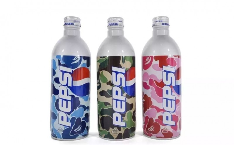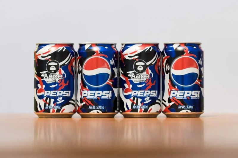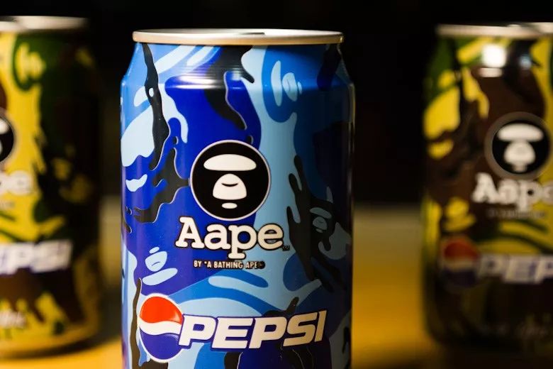 早在2001年,Pepsi就和日本著名街头潮牌BAPE共同推出了限量发行的猿人迷彩百事子弹罐,而且只在日本市场贩售。由于当时的发行量很小,因此现在想要找寻这批复古款的难度相当大,但仍然有许多收藏迷乐此不疲地投身其中。
