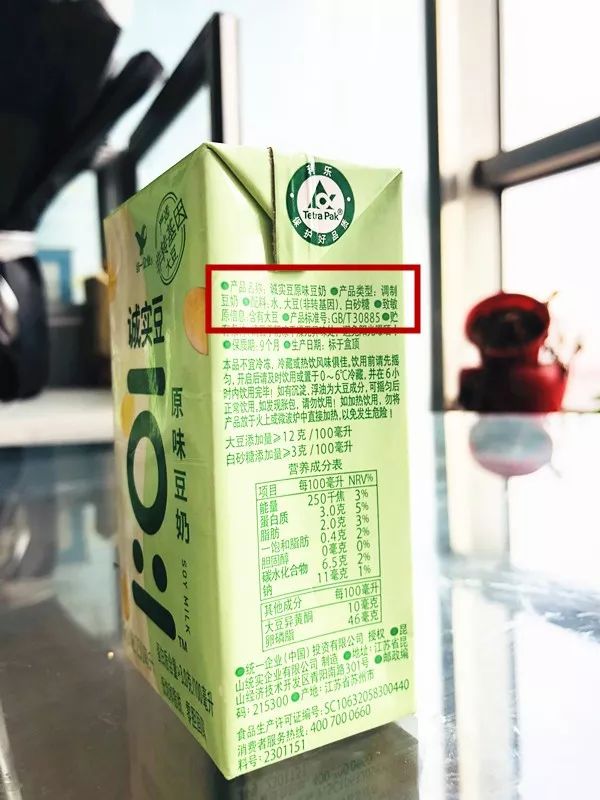 高清大图来啦!(可以忽略食品板的团宠们~)可以看出,产品包装有一个非常醒目的“豆”字,第一眼揭示产品属性。目前产品有原味豆奶,利乐装,含量为250毫升/盒,保质期9个月。