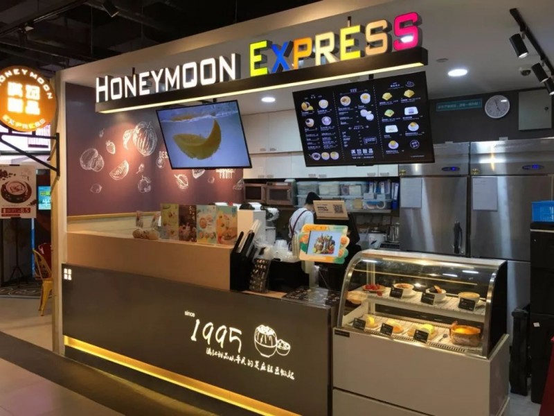 与盒马鲜生合作的Honeymoon Express是今年满记甜品运营的重点工作。 Honeymoon Express打造大牌小店,店铺面积仅30㎡左右,在成本控制和业绩增长都具有优势。