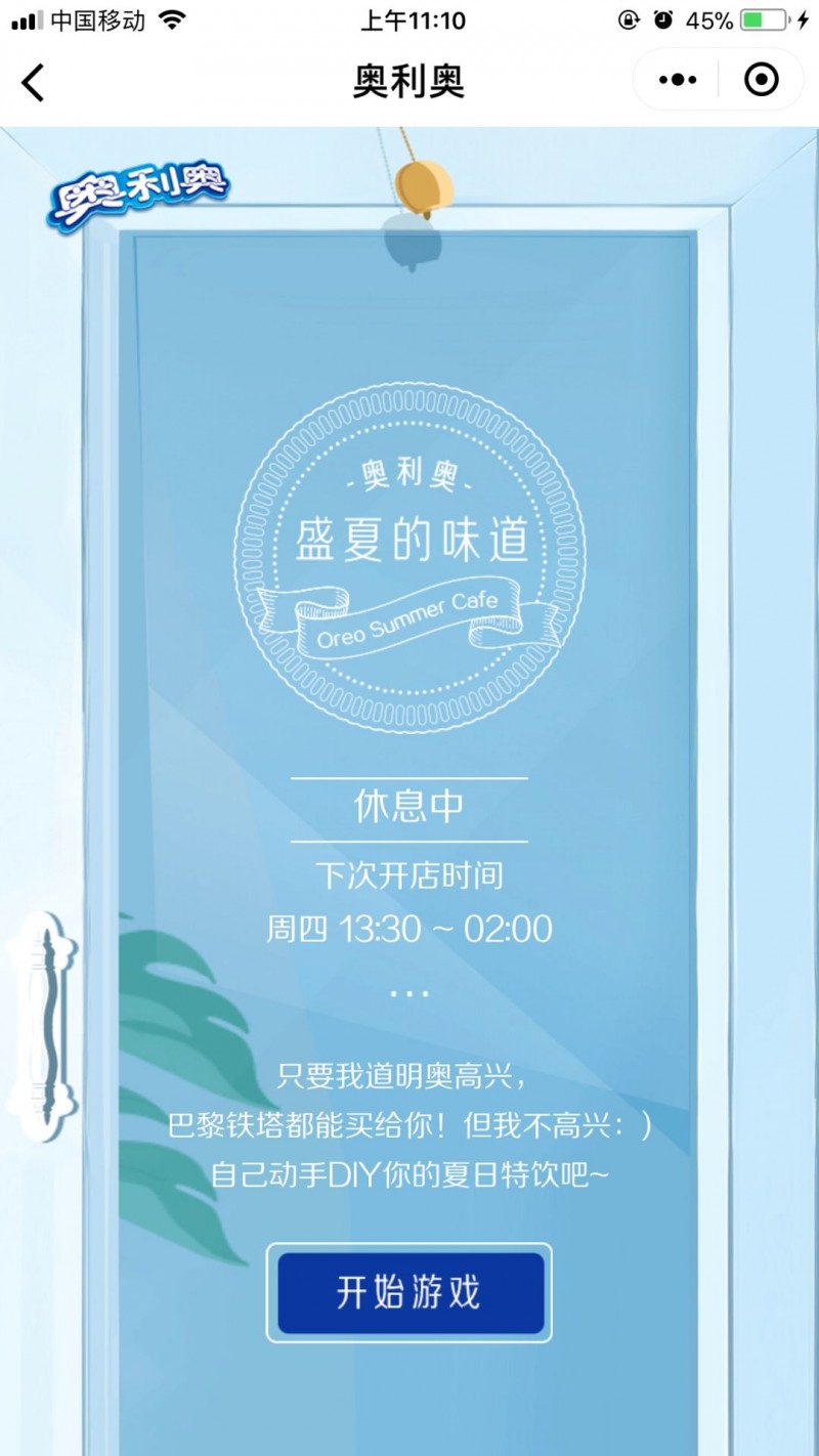 唯一让人费解的是“不定时开放”这个设定,据奥利奥表示,这是为了增添一种期待和神秘感,就不知道点开链接的用户会不会买账了。