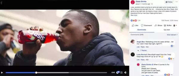 2017年,很多企业在广告中使用的Grime类型的音乐吸引了很多年轻消费者,Oasis效仿这些企业,也发行了他们自己的电台广告和Grime音乐视频。Radiogauge的数据显示,Oasis的本次宣传活动大大提高了在消费者心中品牌的有趣度和产品的消费可能性。