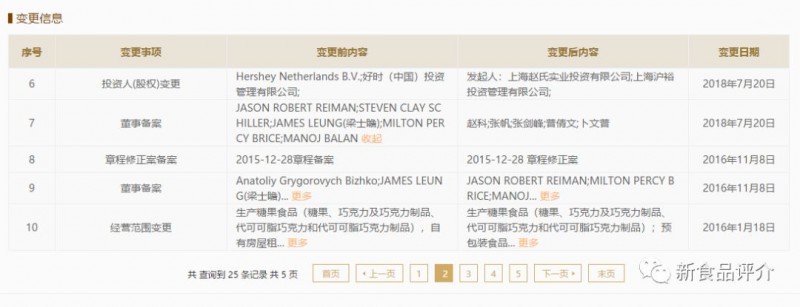 从上海金丝猴食品股份有限公司的股东名单中看出,Hershey Netherlands B.V.和好时 (中国)投资管理有限公司,已经变更为上海赵氏实业投资有限公司、上海沪裕投资管理有限公司。同时,企业类型从股份有限公司(中外合资),变更为其他股份有限公司。另外,从监事、董事到经理等一干管理团队人员的名单都发生了变动,好时公司的相关人员撤出,来自新股东方的团队已经到位。