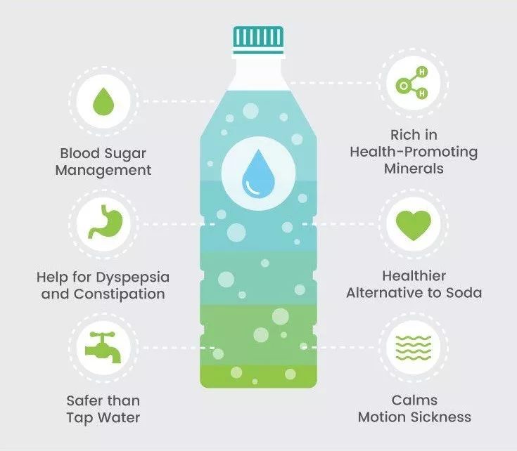 除此之外气泡水还能帮助消除肌肉酸痛,运动尤其是无氧运动之后,乳酸会在体内堆积,气泡水可以帮助排除乳酸,缓解肌肉疲劳,顺便补充流失的矿物质。