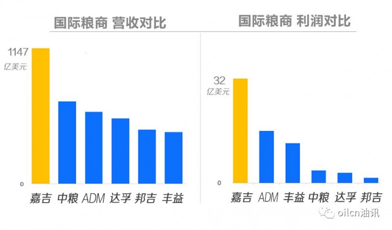 就盈利能力而言,ADM、丰益的利润额领先。