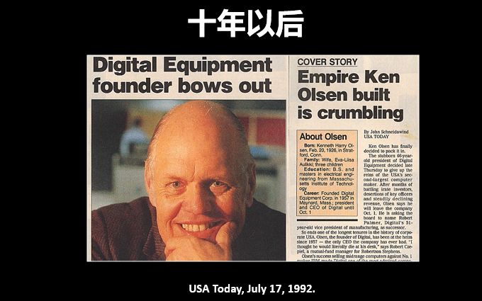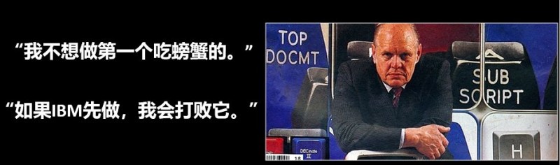 DEC是当时的小型主机领导者,品类的趋势和机会并不会在一夜之间诞生,而是一个缓慢的过程,在这个过程中大家都习惯了等待,而没有人愿意去尝试。