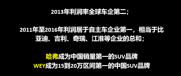 长城汽车经过我们长达十年的战略辅导,毫无疑问,是目前为止在中国的定位实践中成果最为显著的一家企业,10年的时间,从80亿做到1000亿,这是一个硕大的成果。
