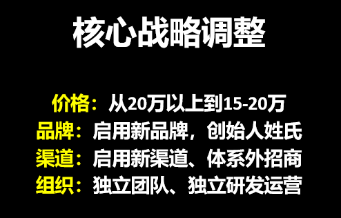 当企业从80亿做到了1000亿以后,接下来应该怎么做?答案很简单:持续聚焦哈弗,寻找下一个增长点。中国手机消费者越来越接受中国品牌,汽车也会如此。因此,里斯中国团队建议长城推出中国首个豪华SUV品牌:WEY,聚焦15-20万区间。其实在WEY推出之前,在这个价格区间已经有了类似产品,,比如传祺GS8,但是GS8并没有将品类与品牌关联到一起,提及15-20万区间的中国品牌SUV,消费者很少能够联想到传祺,但很容易联想到WEY,这就是品类战略的优势。