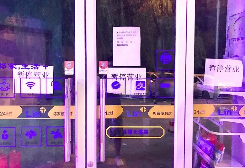8月1日晚上20点左右,《第三只眼看零售》分别走访了邻家位于北京丰台诺德中心和百强大道的两家门店。这两家原本24小时营业的便利店已经关门歇业,其中一家店门口张贴着“设备维修、暂停营业”的贴士;另一家门店用一张A4纸告知消费者:预定的早餐到旁边的包子店领取。