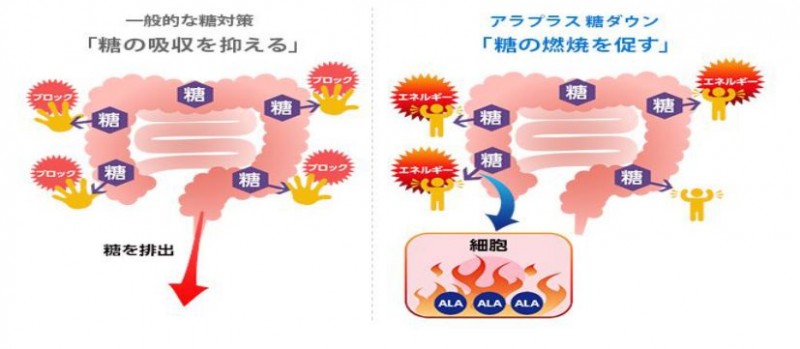 因此研究人员认为,作为功能性成分的ALA可以通过激活体内的能量产生从而增加糖的消费,来使得高空腹血糖接近正常和使平时餐后血糖的上升呈平稳状态。基于以上的开发背景,ALAPUS糖TOWN于2015年12月18日被投入市场,适合血糖值偏高、运动不足、生活习惯不规律人群使用。