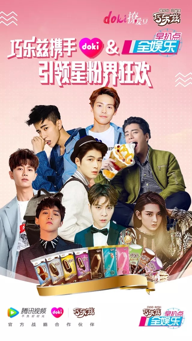 巧乐兹不仅成为腾讯视频的优质粉丝追星社区——doki频道的官方战略合作伙伴,更独家冠名优酷《全娱乐早扒点》,展开粉丝经济超强场景营销。全方位助力粉丝吃定爱豆。doki线下见面会现场,巧乐兹巧妙场景植入,冰品屋、明星应援灯牌等,以及流量明星带货加持助力,新品上市后多次售卖一空;形象植入方面,巧乐兹继续沿用人偶IP——“巧公子”,潜力IP与巧乐兹品牌强势捆绑,形成品牌IP资产,为品牌“代言”。