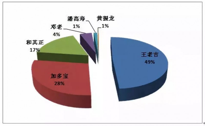 据了解,加多宝的年销售额从 2015 年开始停滞,2016 年更是发生倒退,王老吉这边却是另一种光景,2015 年,王老吉销售额突破 200 亿,二者的市场地位也在此刻形成了互换。2014 - 2017 年,王老吉的收入复合增速为 6.5%,而加多宝的收入复合增速为 -15%。根据 2014 年的基础数据以及近年二者的增速,王老吉在凉茶的市占率已经成为第一。