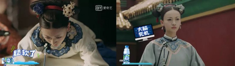 你一定也注意到了剧中的“创可贴”广告。喏,像下图中脉动神出鬼没、强行抢戏的操作就是了。当女主被皇上申斥,脉动蹦出一句“腿软了”;当女主怎么也想不通高贵妃的阴谋时,脉动再次跳出来揭露女主内心OS……