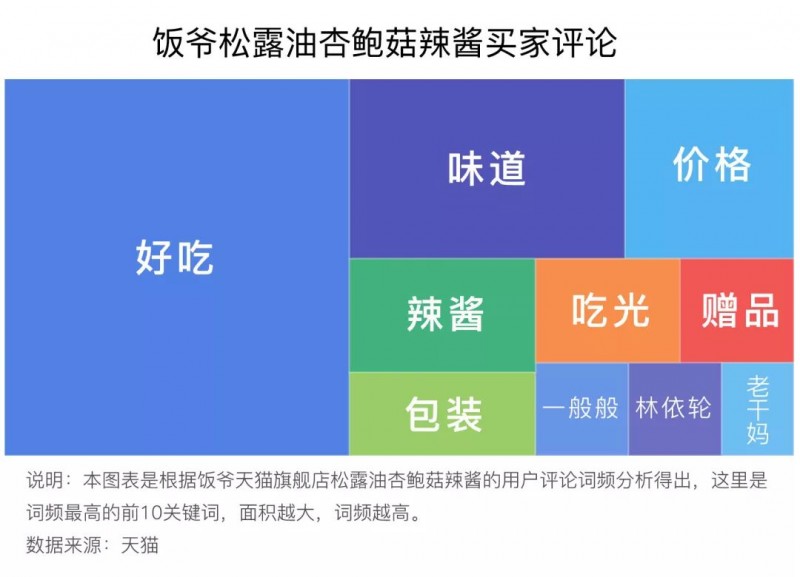 难道是辣酱不好吃吗?“延禧”套装里有两款酱,一个是松露油杏鲍菇辣酱,销量在该店31款辣酱里排第六。小编扒取了这款辣酱的300多条评价,发现“好吃”二字出现频次最多。对于辣酱本身,吃货们还是认可的。