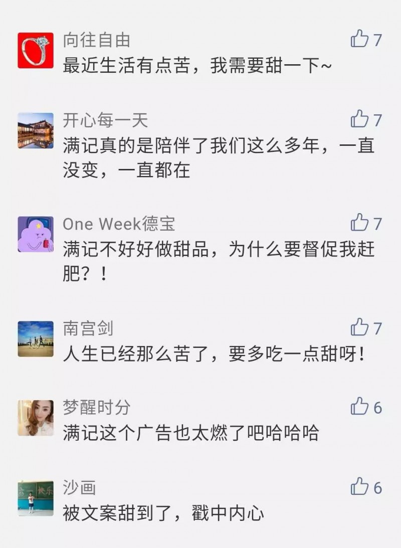 从用户的反应不难看出,这一波回忆杀带来的不仅仅是关于儿时的记忆,还有种种用户与满记这个品牌间发生的甜蜜。
