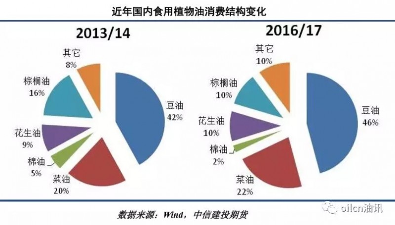 在植物油市场规模一定的前提下,豆油的市场价格相对较低,从而挤占其他植物油的市场份额。