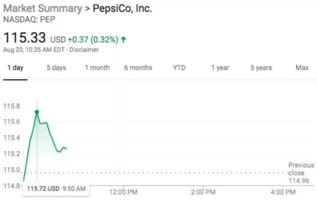 通过全球来看,百事只有12%的饮料收入来自“百事”产品,碳酸饮料的收入占比低于25%,百事可乐近年推出了低卡路里的饮料,还有低盐和低饱和脂肪的零食,目前它们占到收入的45%。