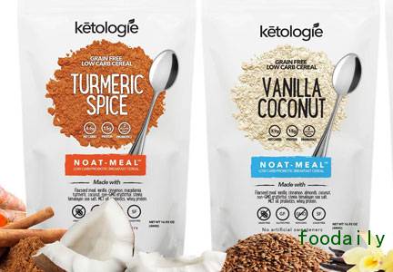 Ketologie的Noat-meal系列早餐产品含有亚麻籽粉、坚果、乳清蛋白、中链甘油三酸酯油和益生菌,有巧克力坚果、香草椰子和姜黄香料等风味。每份含17-18g脂肪、15g蛋白质和少于5g的净碳水化合物(净碳水化合物的计算:从总碳水化合物中减去膳食纤维和糖醇,因为这些类型的碳水化合物被认为对血糖水平几乎没有影响)。该公司还正在研发一系列即饮的、生酮特征的汤和奶昔。