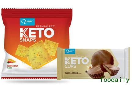 位于美国加州的Quest Nutrition公司,已经在研发符合生酮饮食特征的零食和糖果。Quest Keto Cups的特点是以巧克力为外壳、奶油馅料,有香草奶油、薄荷奶油、乳脂软糖奶油和花生酱风味,每份含26-27g脂肪和2g净碳水化合物。Quest Keto Snaps,是低碳水化合物奶酪薄脆饼干,有辣味杰克和切达奶酪味等品种。该品牌也推出咸饼干和意大利草药薄脆饼干,含有18g脂肪和2g净碳水化合物。此外,该公司正在研发一系列的生酮饮食,计划很快推出。